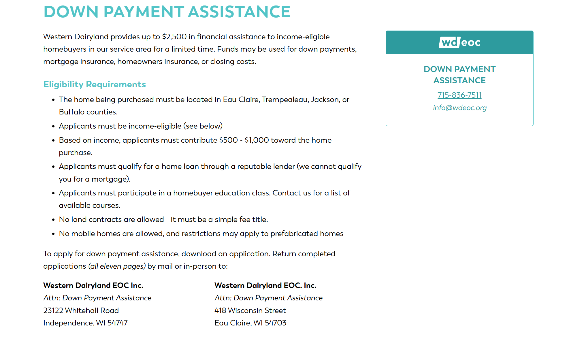 Below is a down payment assistance program offered through Western Dairyland.